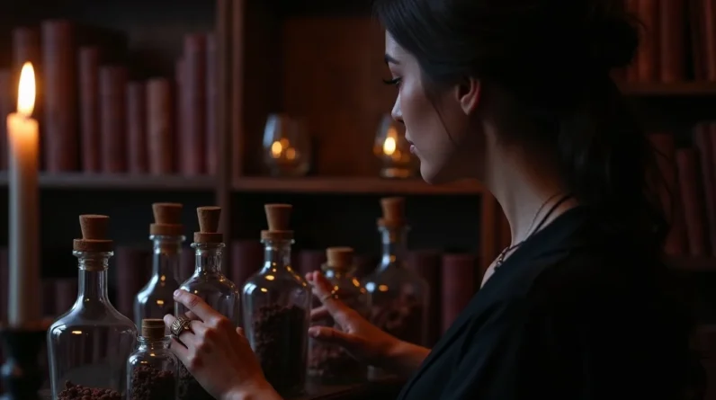 - Victorian gothic: study vibes, dark wood, and ornate bottles